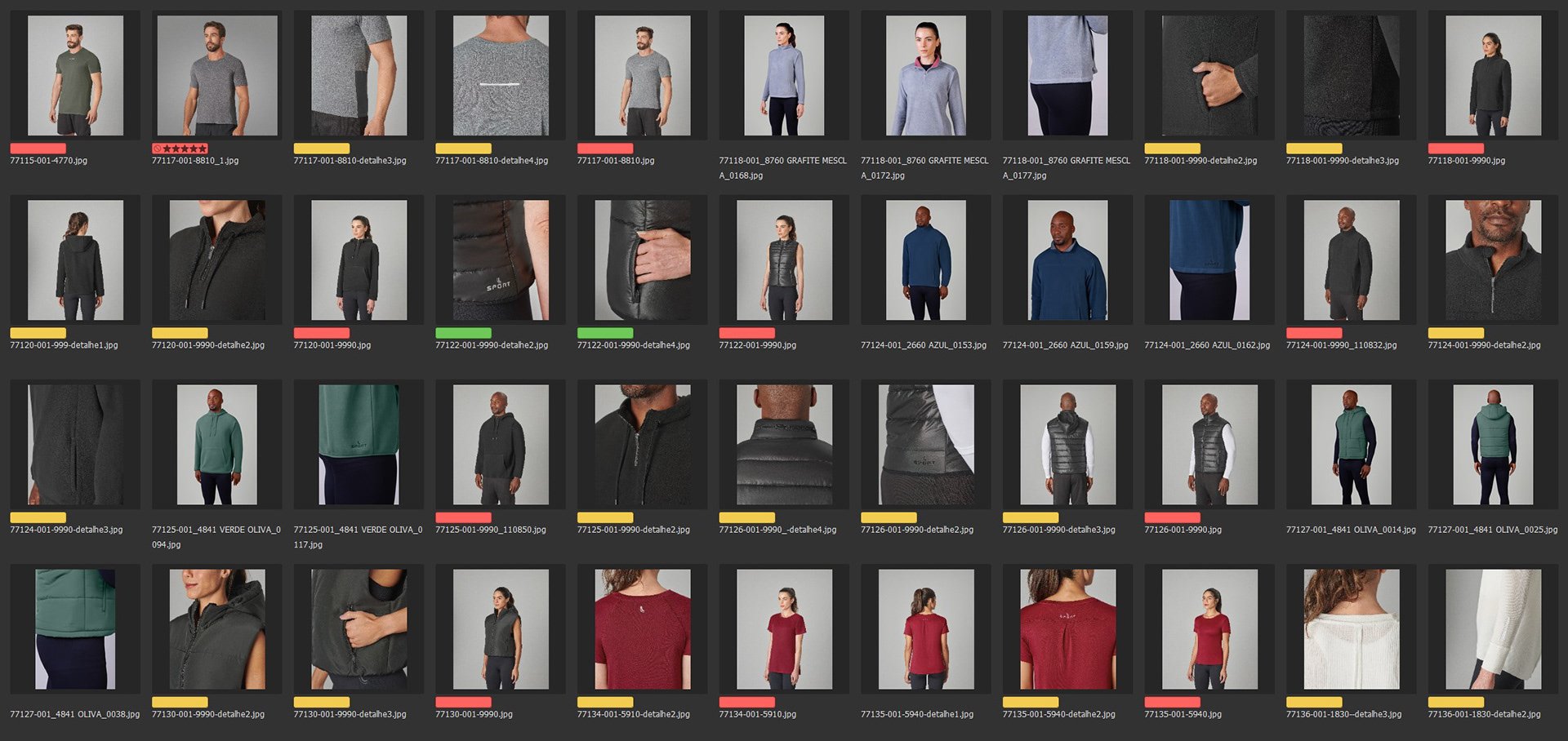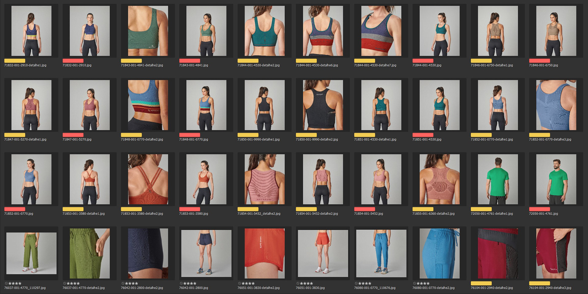 Tratamento, organização e padronização de centenas de produtos e-commerce. As cores das roupas foram conferidas fisicamente e aprovadas com o cliente para entrega de imagem o mais proxima do real. /RG Imagem