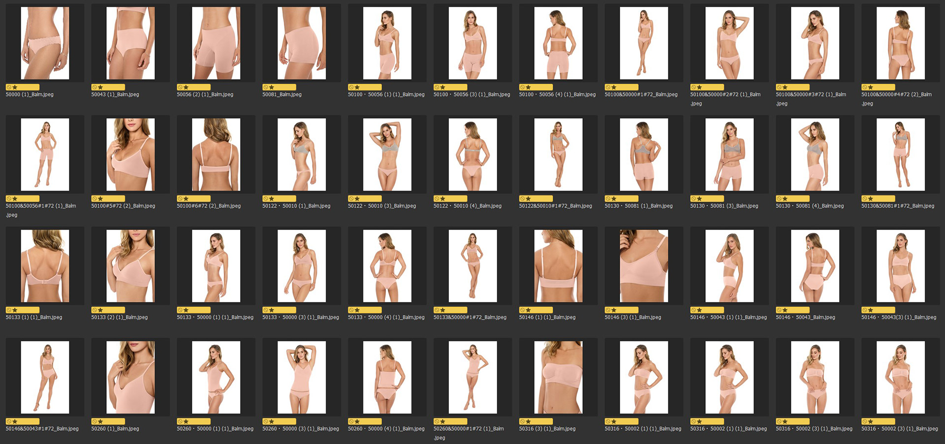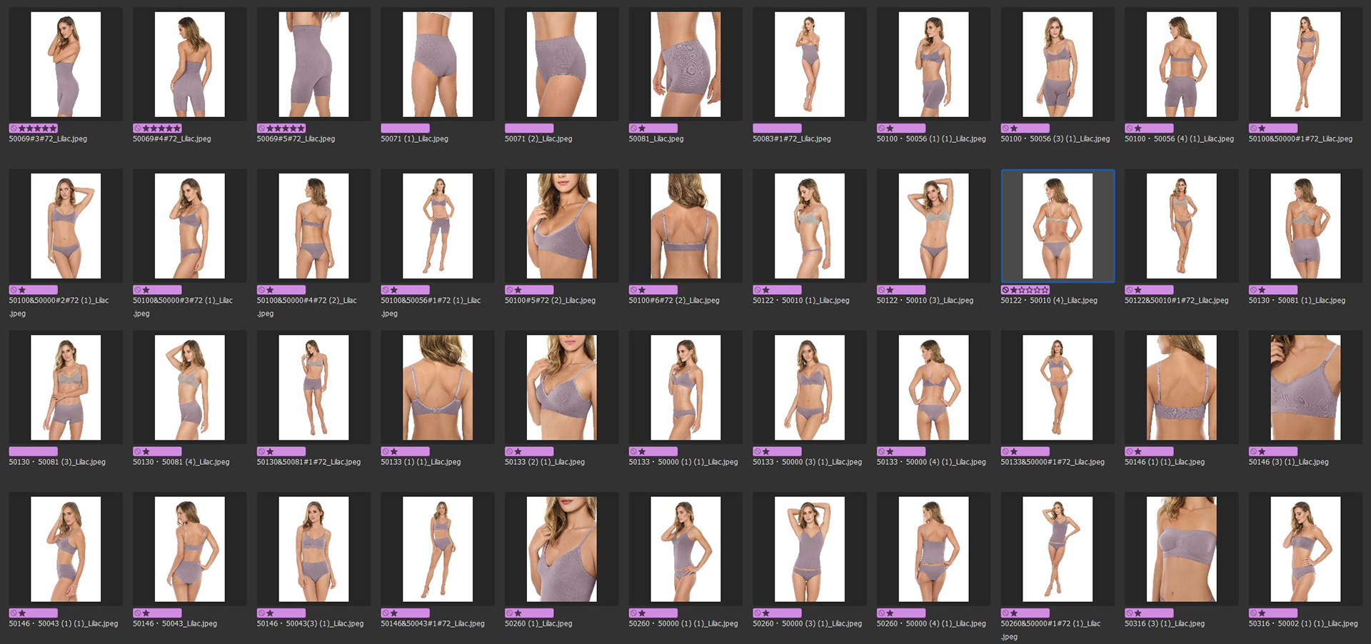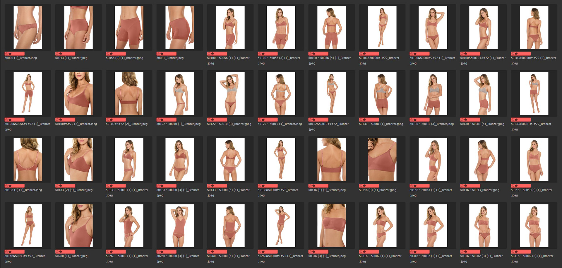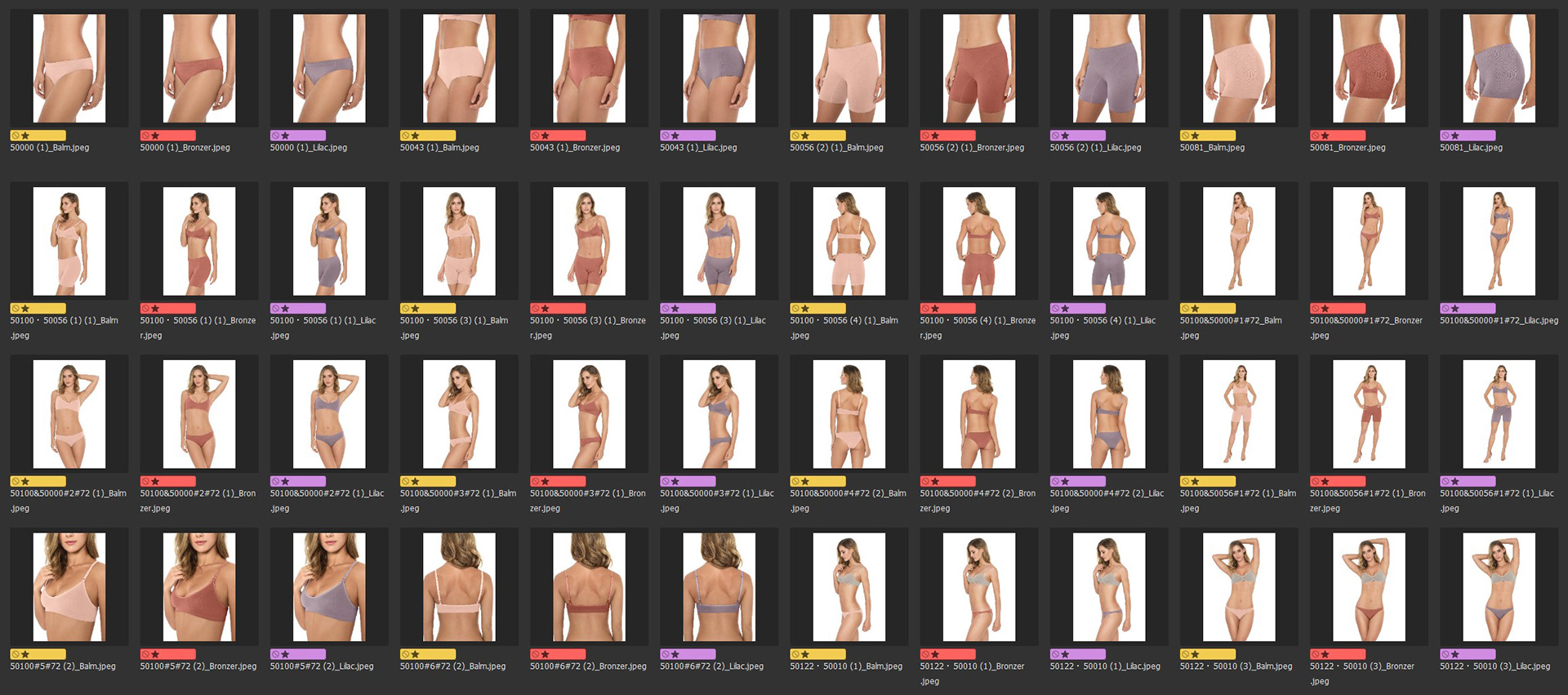 Tratamento e organização de mais de 300 imagens de catalogo de roupas íntimas da marca Plie equilibrando tons de pele do ensaio e fabricando variações de cores das peças fotografadas. /RG Imagem